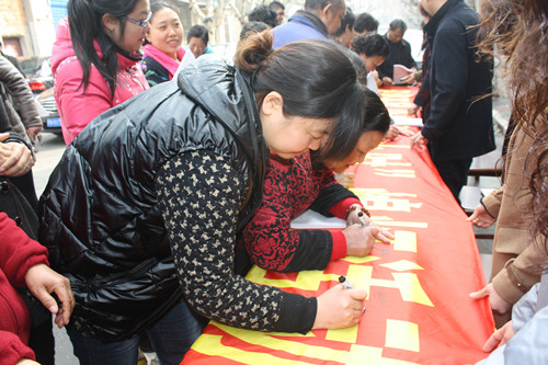 3月22日上午,區(qū)自來水公司與玉帶社區(qū)等單位聯(lián)合舉辦“地球一小時”熄燈宣傳倡議活動,共同向社會廣大市民發(fā)出關愛地球,關電熄燈的倡議,共享環(huán)保一小時,公司員工代表紛紛在活動條幅上簽名,做出自己的環(huán)保承諾,同時,活動也得到了廣大市民的積極參與與響應。