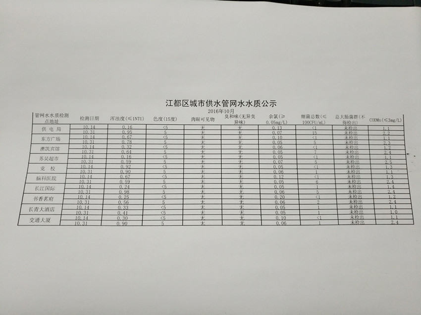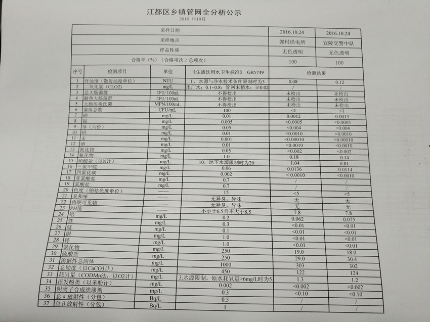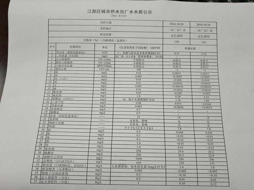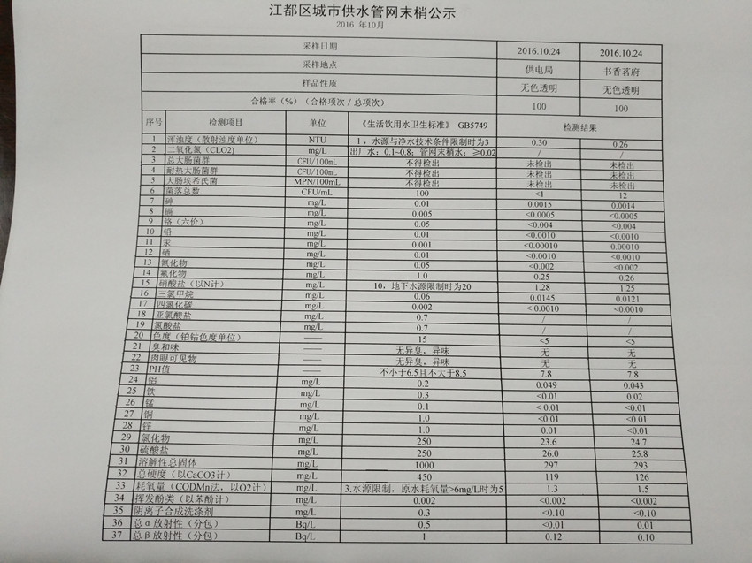 水質(zhì)公示
