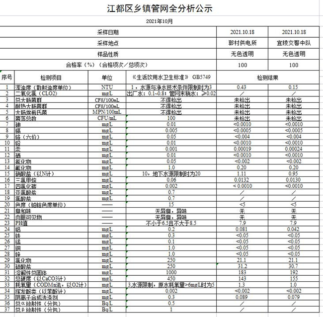 水質(zhì)公示