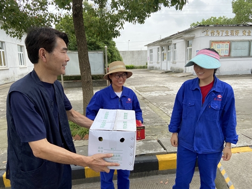 8月4日上午,在總經(jīng)理王智勇的帶領(lǐng)下,公司黨政工領(lǐng)導(dǎo)代表和相關(guān)職能部門帶著防暑降溫物品,先后深入供水生產(chǎn)、水質(zhì)化驗檢測一線、管道施工現(xiàn)場和鄉(xiāng)鎮(zhèn)供水所、污水處理廠,集中進(jìn)行夏季高溫慰問活動,為默默揮灑汗水的一線工作者們送上清涼飲料等慰問品。王智勇總經(jīng)理每到一處都詳細(xì)詢問了他們的工作和生活情況,對大家不畏酷暑堅守工作崗位的精神表示衷心的感謝,并叮囑他們在高溫天氣下勞作要保重身體,既要戰(zhàn)高溫斗酷暑完成本職工作,也要確保身心健康,時刻注意高溫下的安全勞作。