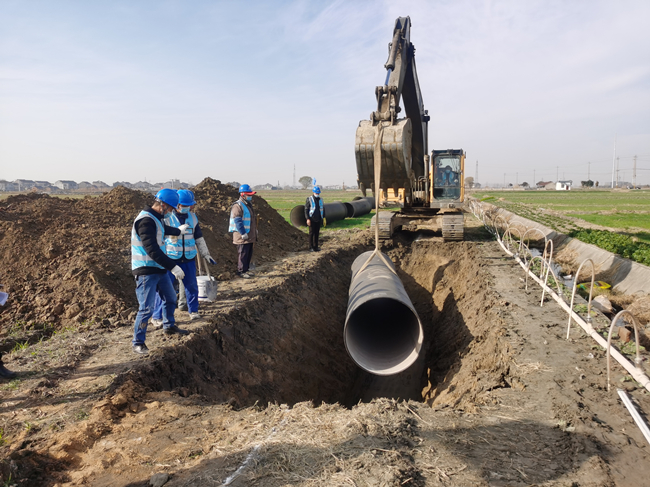 該工程項(xiàng)目契合《揚(yáng)州市江都區(qū)給水工程專項(xiàng)規(guī)劃》(2018-2035),列入江都區(qū)城市建設(shè)和環(huán)境提升重點(diǎn)工程,工程起點(diǎn)位于宜大路與336省道交叉口處預(yù)留的DN1200管道接口,終點(diǎn)位于郭村增壓站,全長(zhǎng)23.39公里,采用管徑DN1000球墨鑄鐵管,輸水規(guī)模達(dá)到8.5萬m³/d,項(xiàng)目總投資18228萬元,預(yù)計(jì)2023年3月竣工。本次先導(dǎo)段施工長(zhǎng)度為750米。