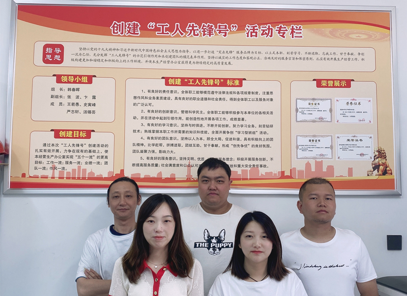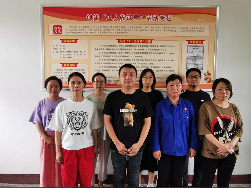 圖為龍泉公司生產(chǎn)經(jīng)營(yíng)辦公室全體成員在創(chuàng)爭(zhēng)專(zhuān)欄前合影