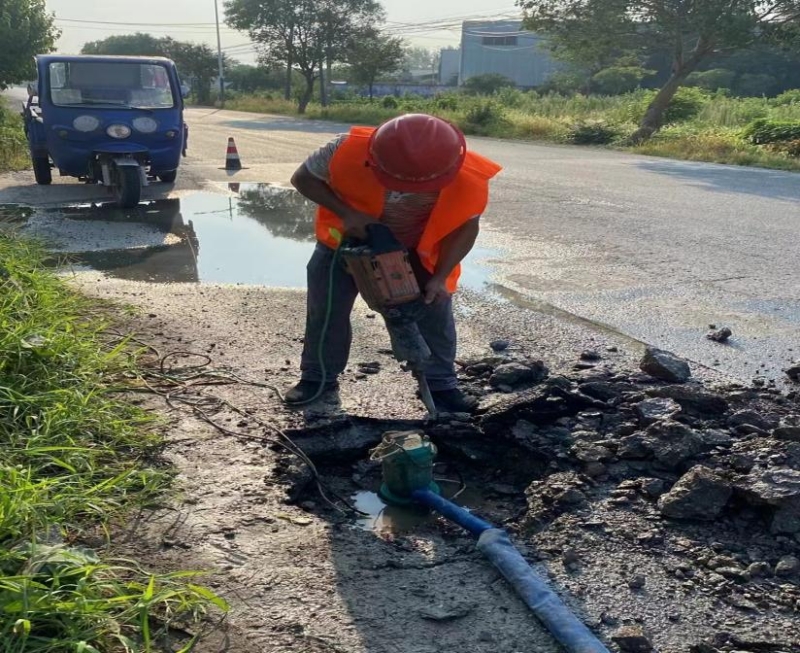 現(xiàn)在是上午7:00,室外的溫度已經(jīng)達(dá)到35度,南片區(qū)維修工任國慶師傅已經(jīng)開始他的日常維修工作。炎炎夏日,烈日當(dāng)頭,任師傅揮動著電鎬開挖路面,汗流浹背,瀝青路面的溫度遠(yuǎn)遠(yuǎn)超出35度,但為了能夠第一時間恢復(fù)供水,再苦再累任師傅也毫無怨言,就這樣,在1小時后完成了維修,汗水已經(jīng)浸濕了他的衣裳,但任師傅絲毫不敢逗留,趕緊整理好了工具,準(zhǔn)備趕往下個維修地點(diǎn)。任師傅笑著說:我們的工作就是這樣,隨時都會有工單通知,隨時都在待命,工作嘛,苦點(diǎn)累點(diǎn),沒事的。