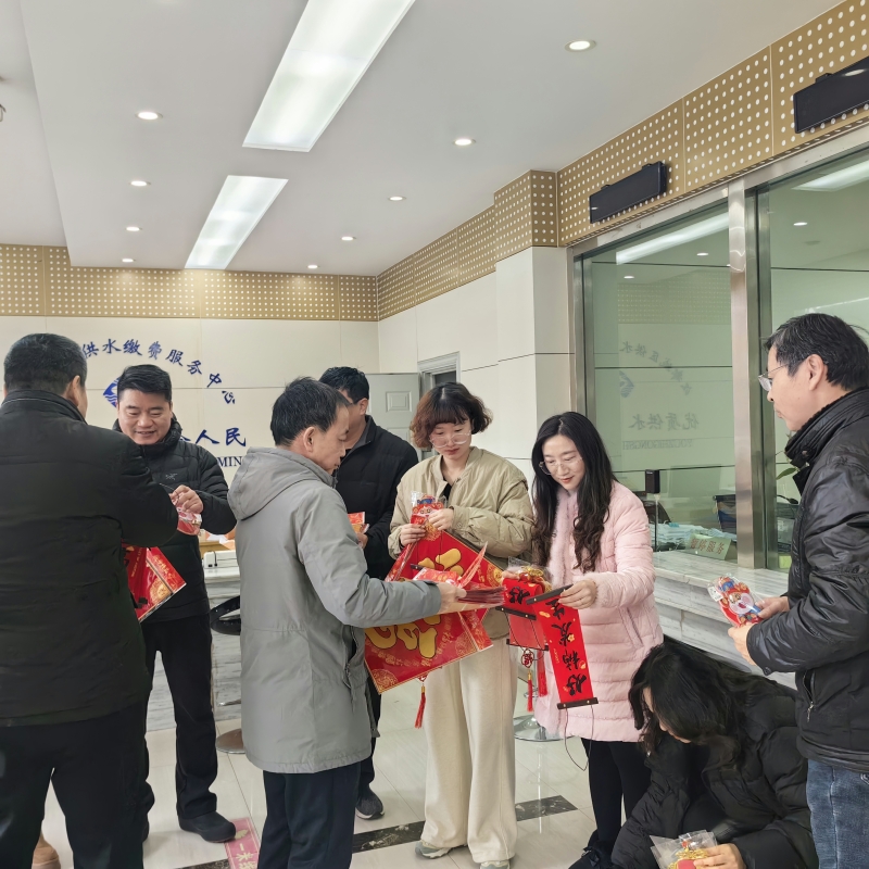 活動現場,由龍川水務公司總經理李忠國親自帶隊,公司工會主席石元忠、副主席孫劍及黨群部工作人員共同組成新春走基層特別慰問小組陪同,他們帶著精心挑選的一系列洋溢著喜慶氛圍的“福”字,以及富有蛇年特色的掛件禮物,深入各部門與子公司的集中辦公點,每到一處,都受到了職工們的熱烈歡迎。一張張寓意祥瑞的“福”字,一件件憨態可掬的蛇年掛件,一句句飽含深情的真切問候,如冬日暖陽,將濃濃的年味兒與新春的祝福,精準地傳遞到每一位職工的心坎上,讓整個公司沉浸在歡樂祥和的春節氛圍之中。