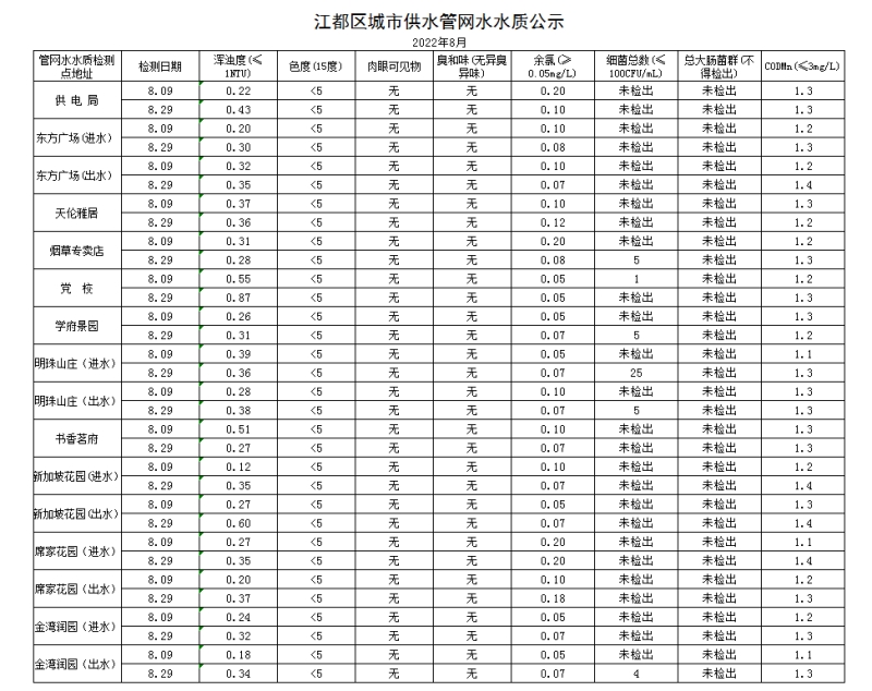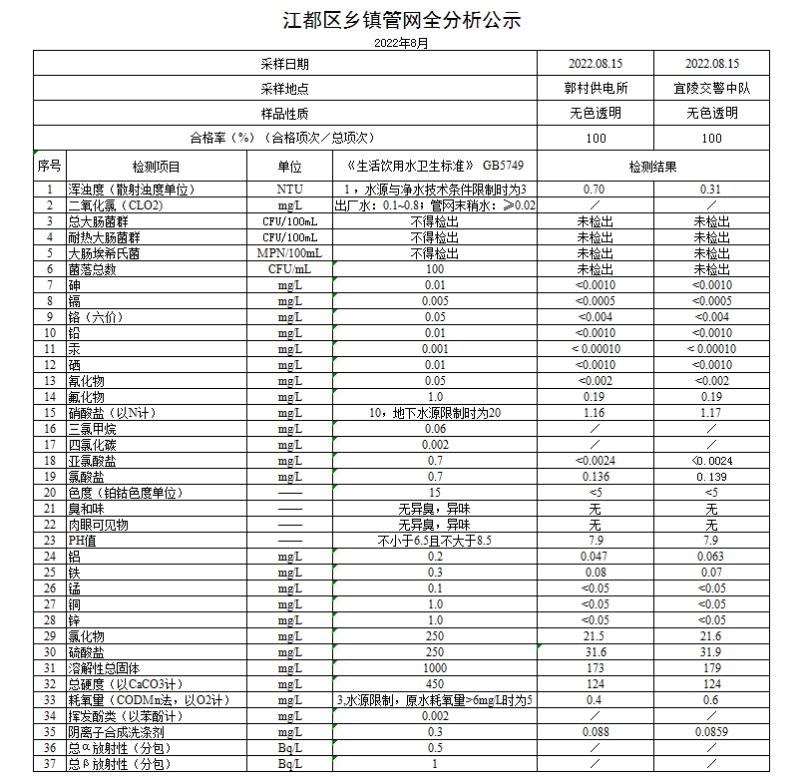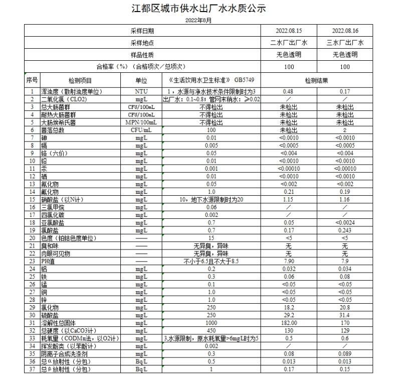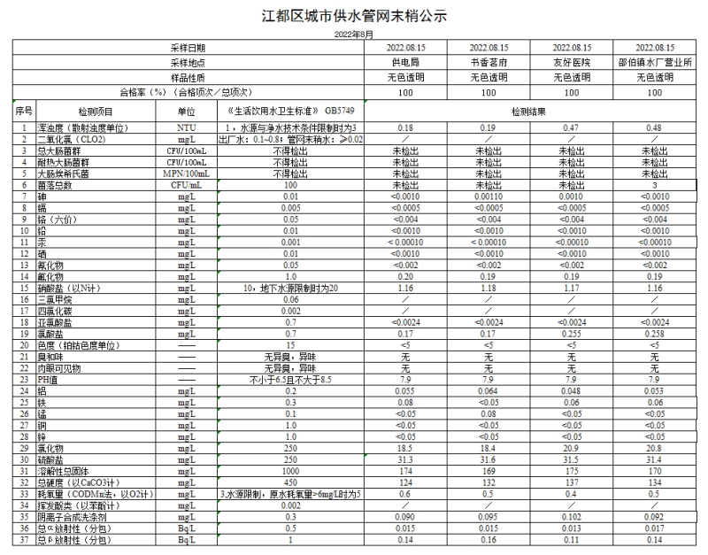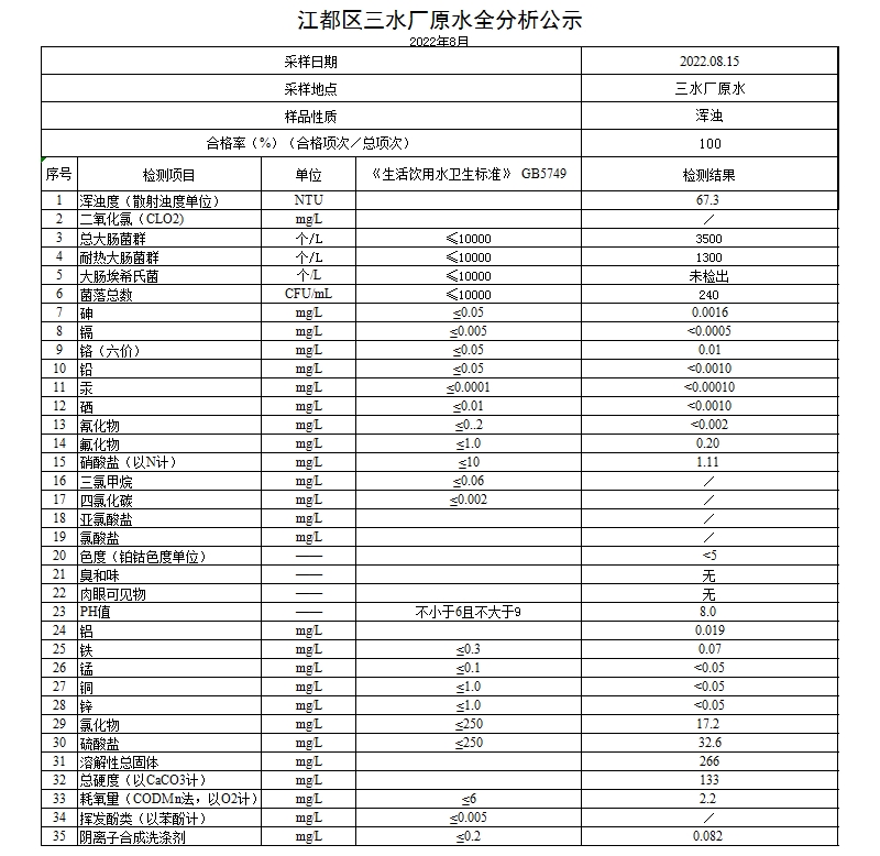 水質(zhì)公示